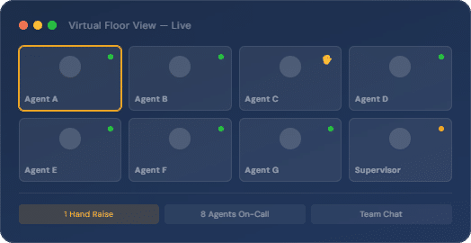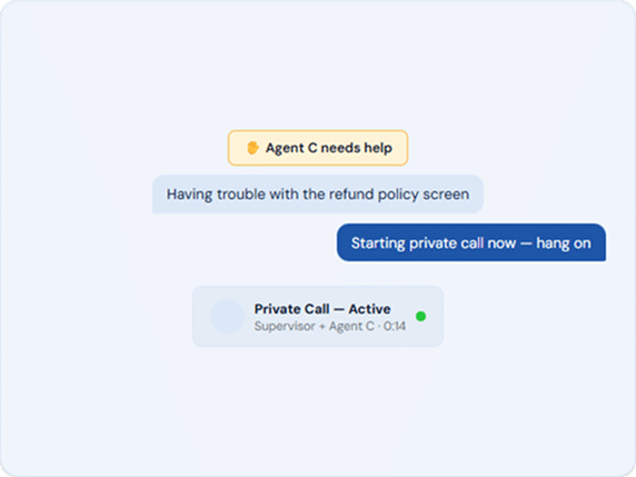 Agents can raise a hand instantly, and supervisors can step in at the right moment without switching tools or slowing the workflow.