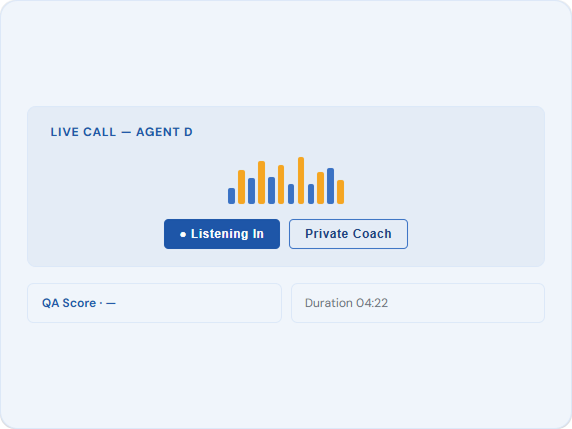 Agents stay more engaged when they can get help quickly, feel visible to supervisors, and don’t have to switch between multiple tools. A setup that allows live monitoring, instant support, and in-the-moment coaching makes a noticeable difference.